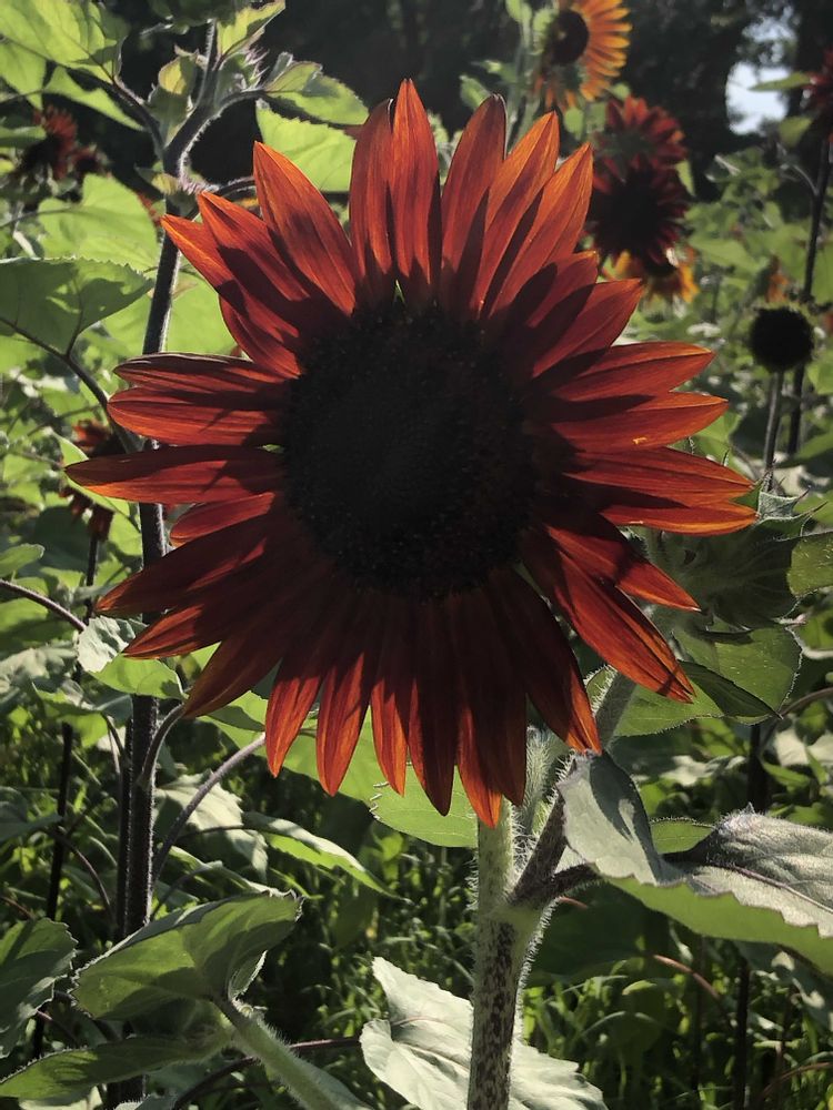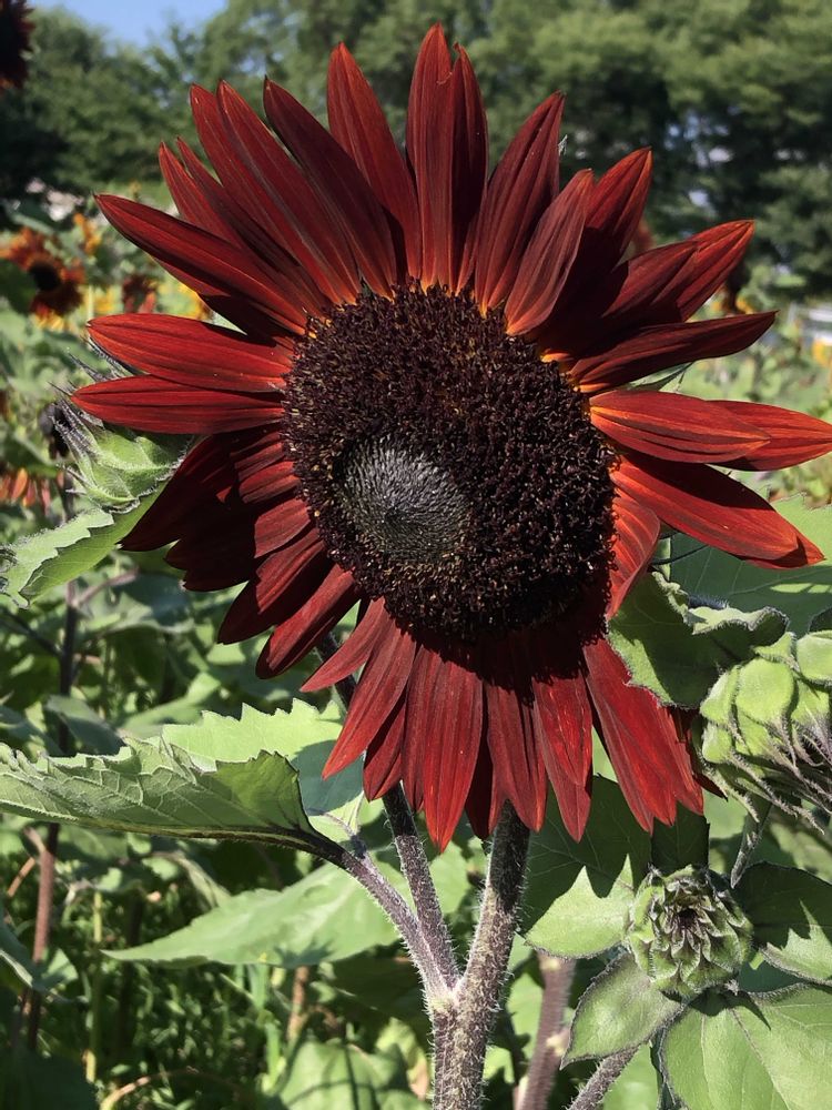ヒマワリの茶色バージョン「ベルベッドクィーン」をパチリ!📸🌻🤎🌿😄🤗🌞✌️