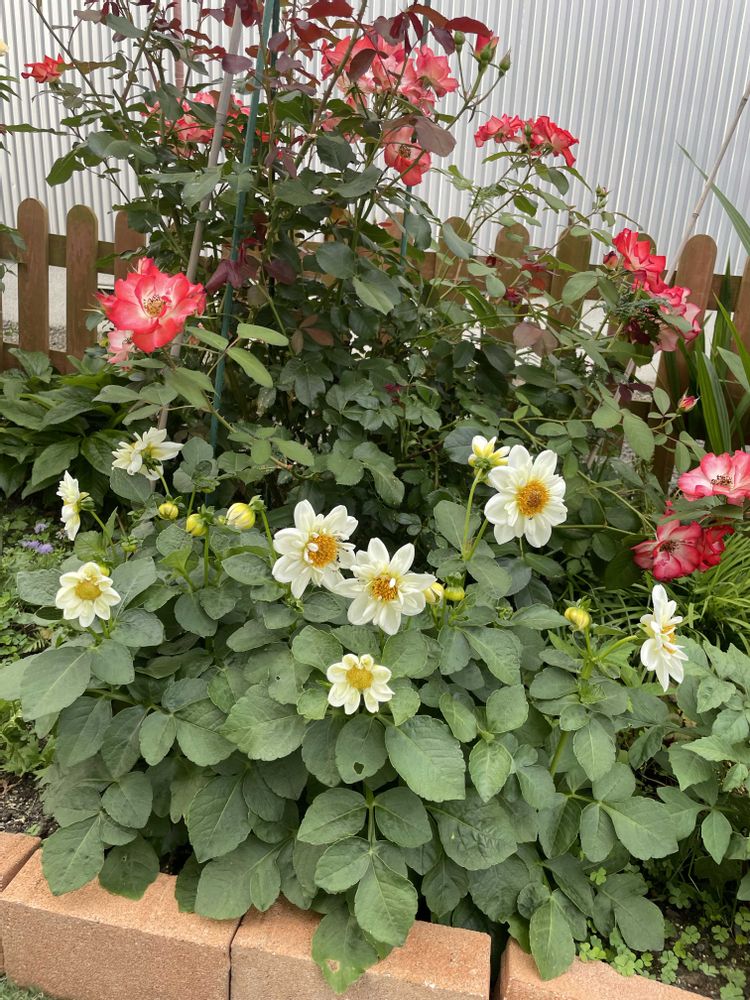 ミニダリアが沢山咲いてくれています...ところどころに穴🕳️ありますが.,,