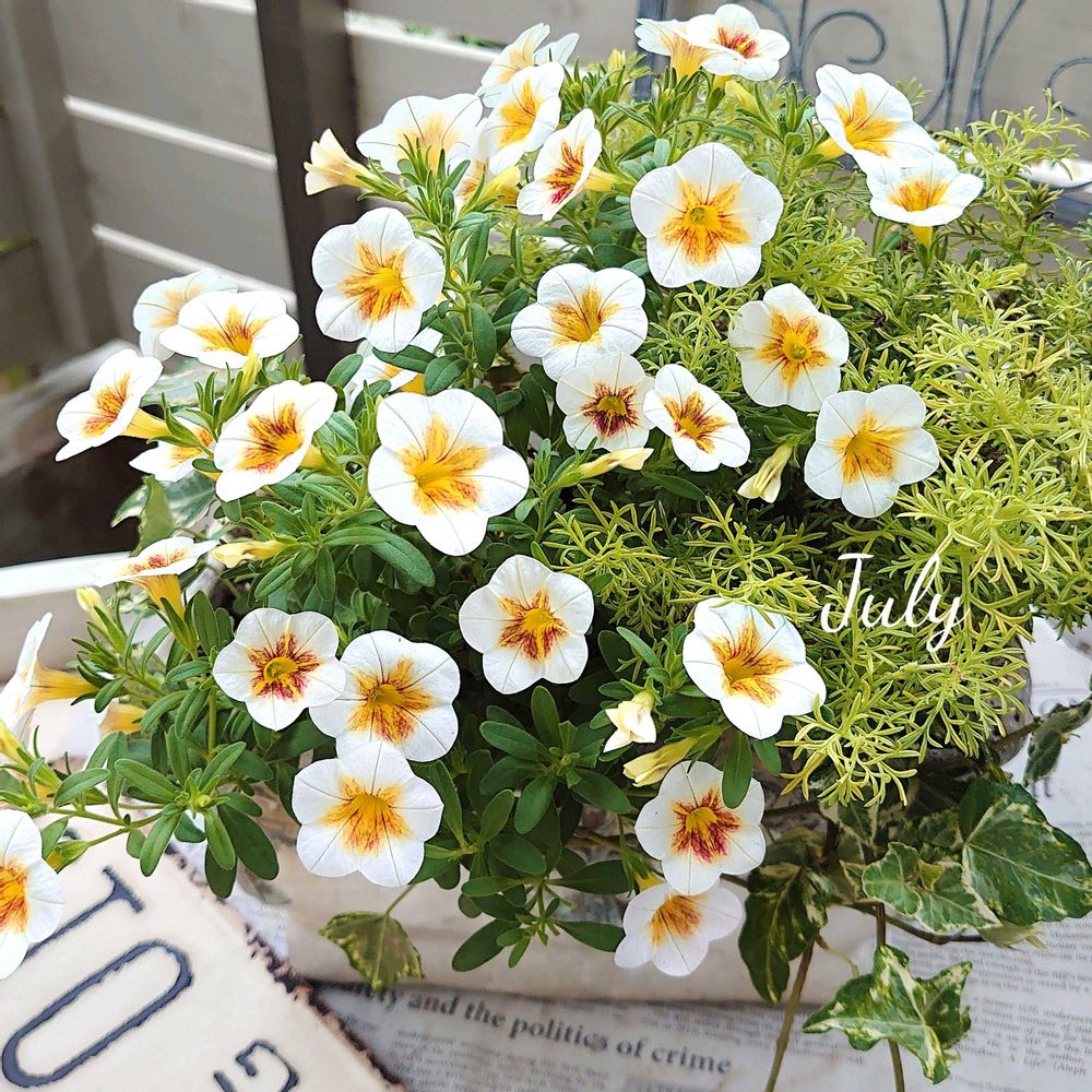 4月に作ったカリブラコアカプチーノの寄せ植えの現在の様子📷️☘️