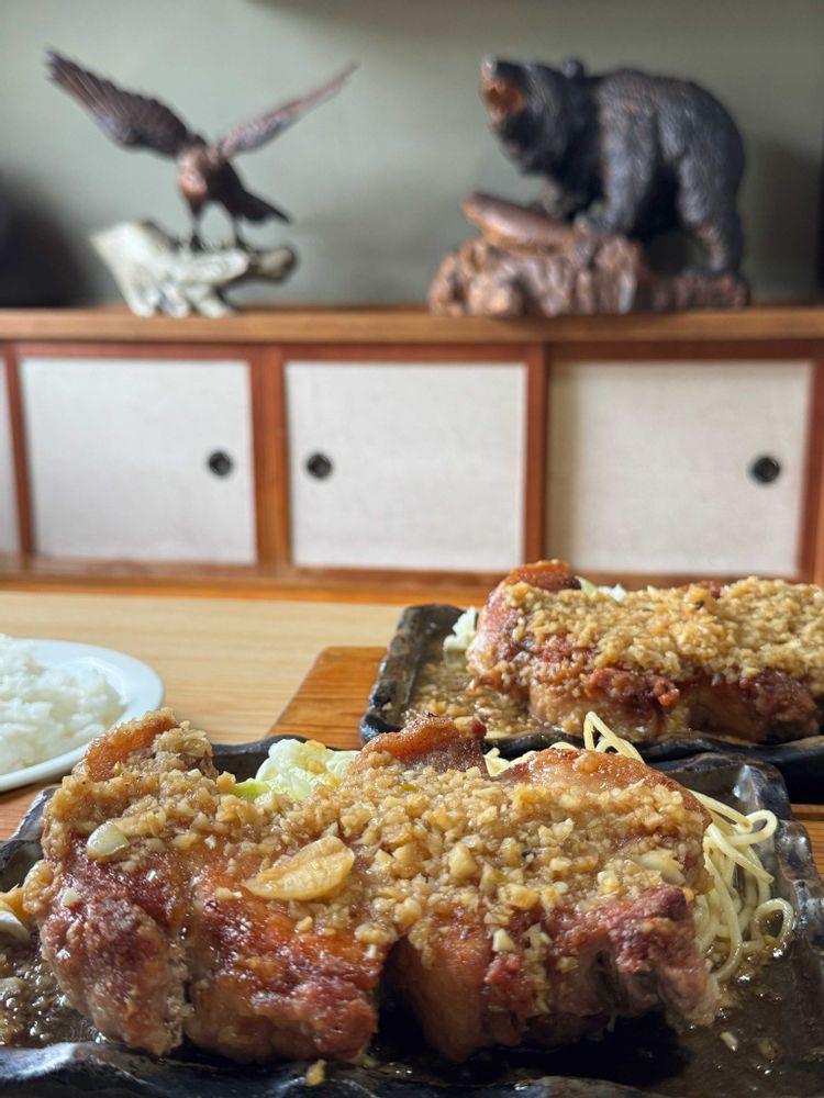 豚のニンニク焼きにハスカップケーキ、美味しそう♡