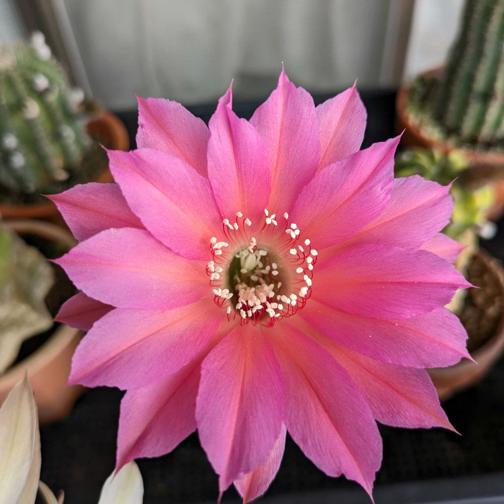 2015年にサボテンが花咲くことを知り、自分で買ってきたダイソーサボテンが次の年に咲いたのをきっかけに、どはまりしてます😅