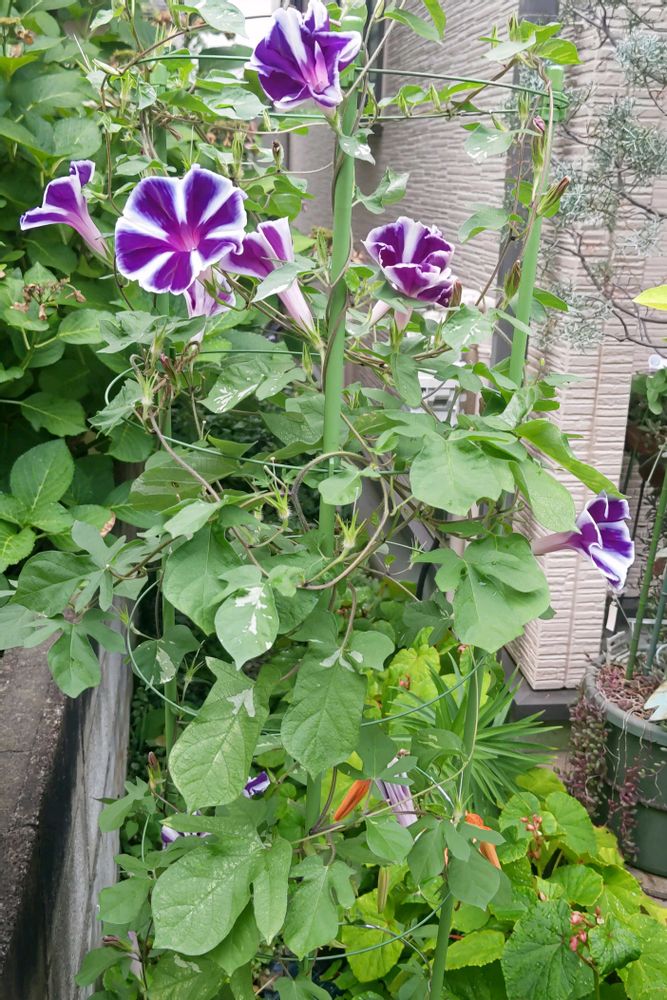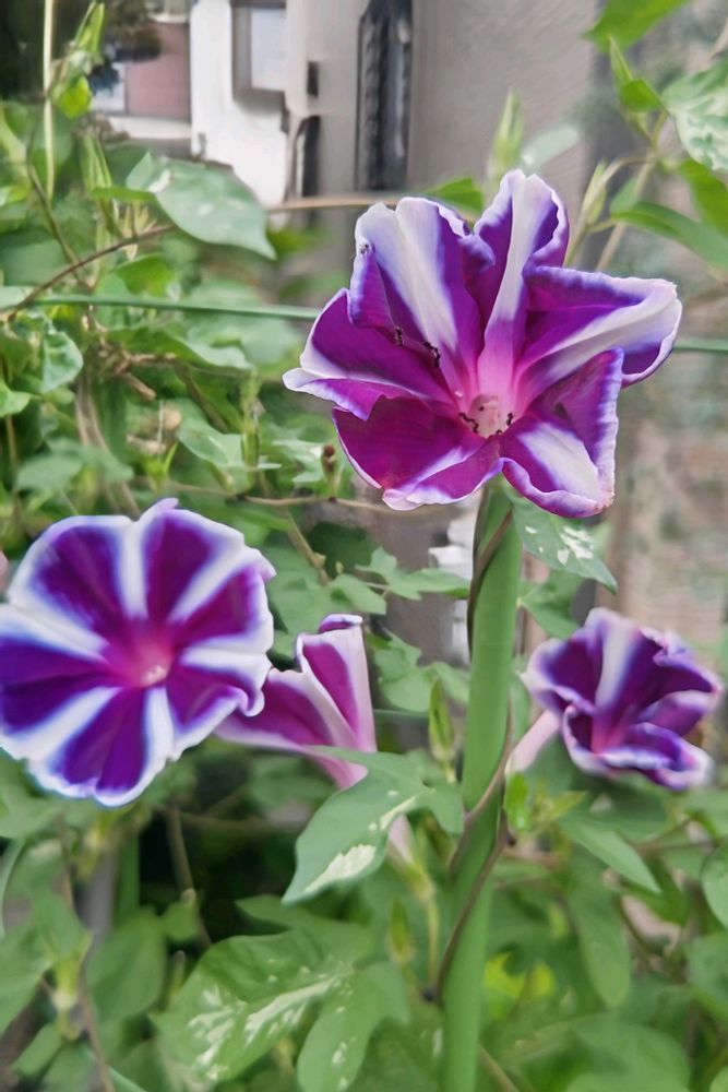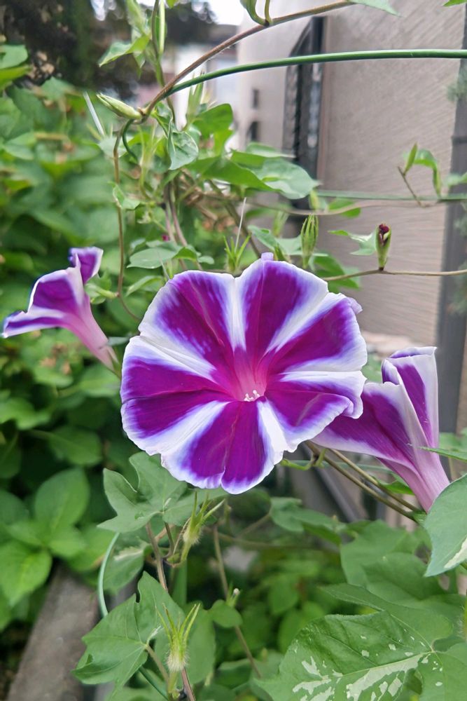 りりーちゃん、毎朝たくさんの花をつける、曜白朝顔の数を数えるお手伝いです😊