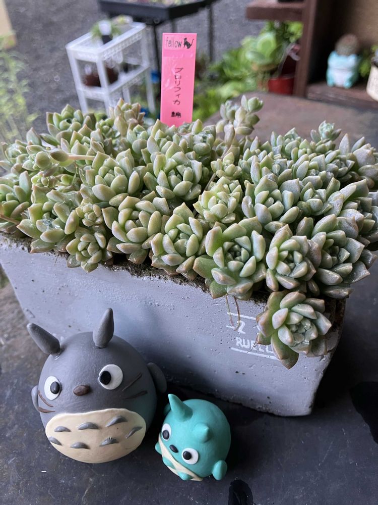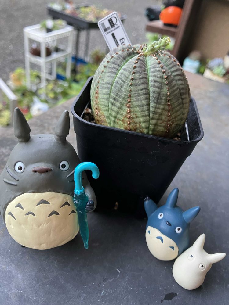 セメント鉢が居心地良いのか、モリモリだよ💕トトロがもってる☂️は、ガチャガチャなの🤣🤚