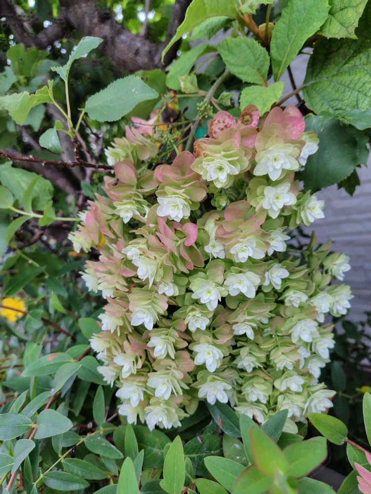 カシワバアジサイの咲き始めた頃も真っ白で素敵だけれど…こんなふうな色合いも素敵💚