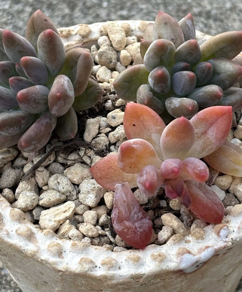 私も見てきたのだけど、グリーンとエッジがピンクのと、どう表現したらいいのかな焦げ茶のような黒っぽいぶどう色みたいな葉っぱがあって、エッジがピンクの葉っぱが少なめかな(•́ε•̀;ก)💦