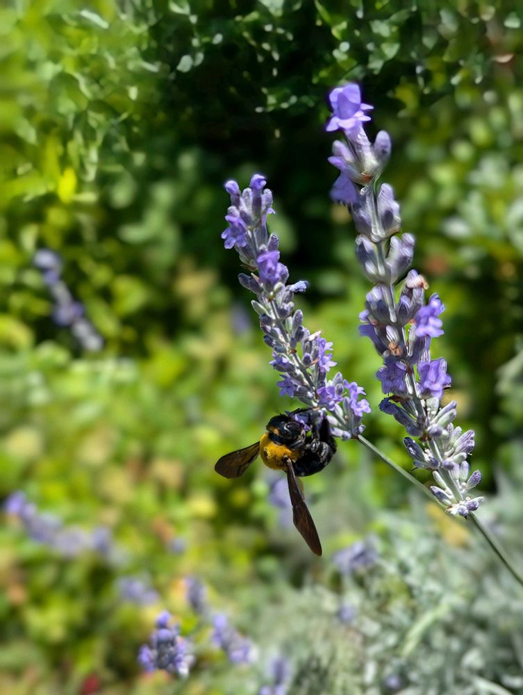 ラベンダーが咲くといつも同じ蜂さんがきますけど蜜吸ってるだけで私には近づかないので安心です🐝