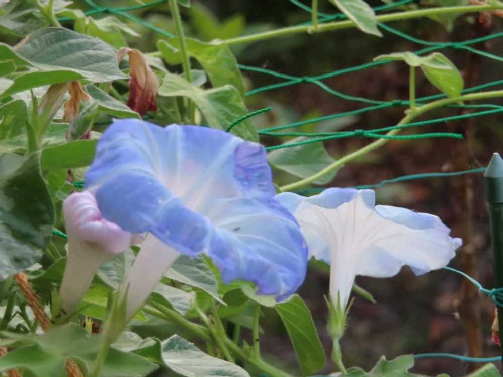 ふくちゃんのお庭に咲く爽やかなアサガオさんたち💙🩵に湿気を追い払って貰いました~🥳🌫️〰︎ありがとうございます♡