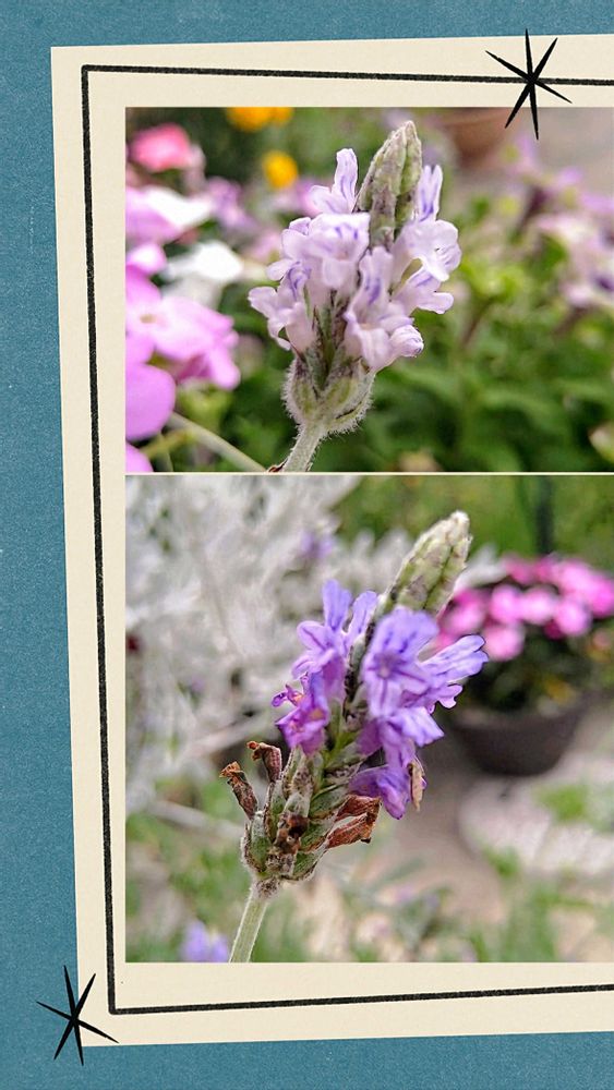 ① 寄せ植えの中のレースラベンダー2種🤍💜