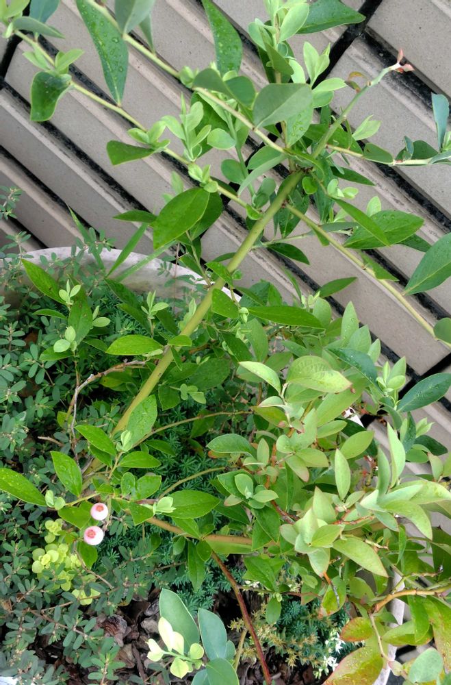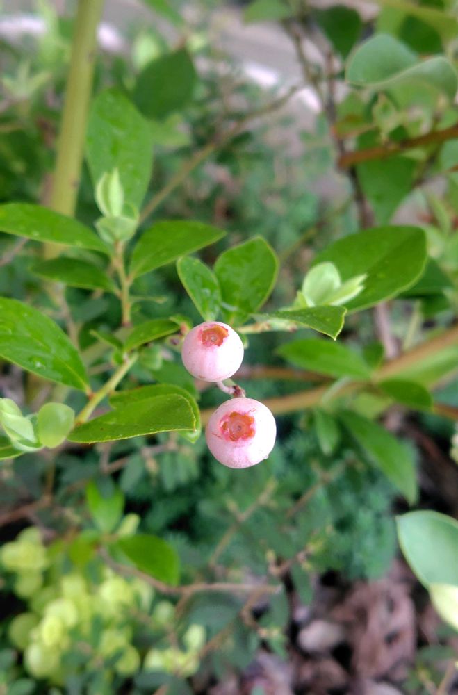②③2粒だけのブルーベリー🫐が色づいてきた。