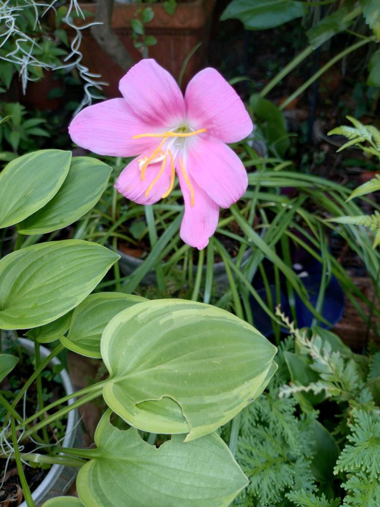 ①②ギボウシの鉢から咲いているのじゃなくてその横の鉢からです。