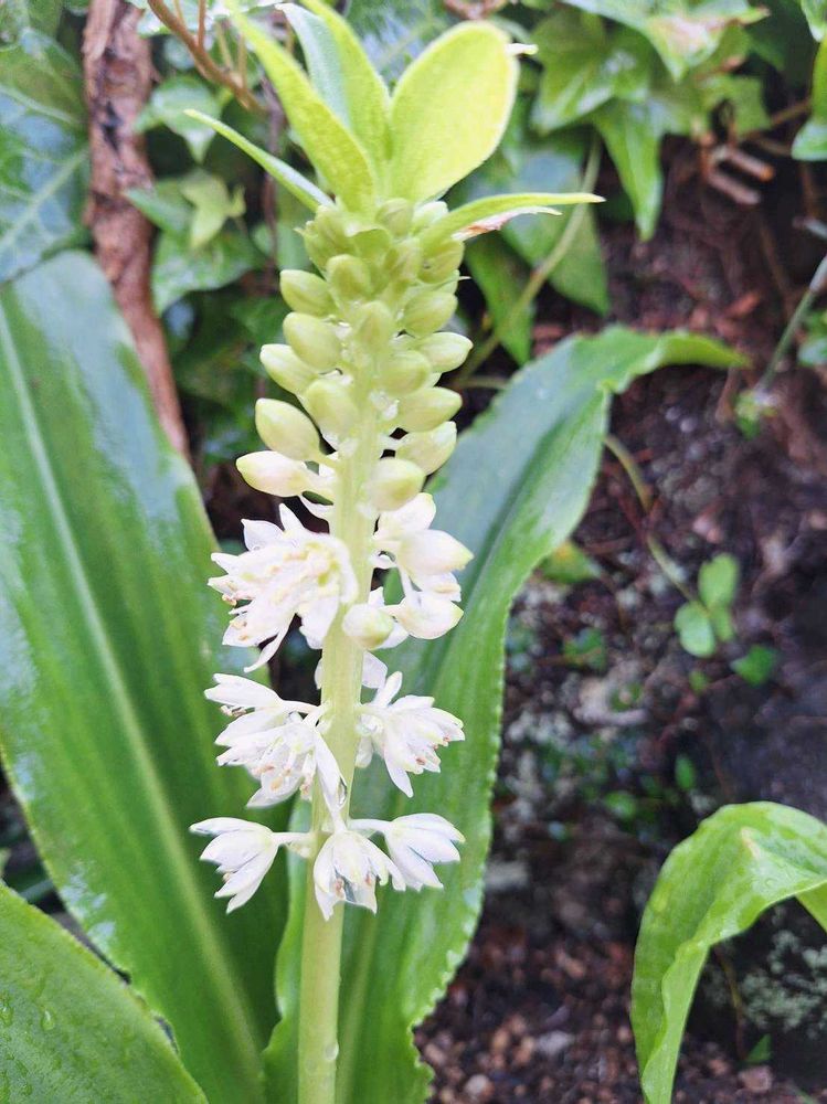 うちのパイナップルリリーを見に行ったら一つだけ咲いていました🌸🍍🤍