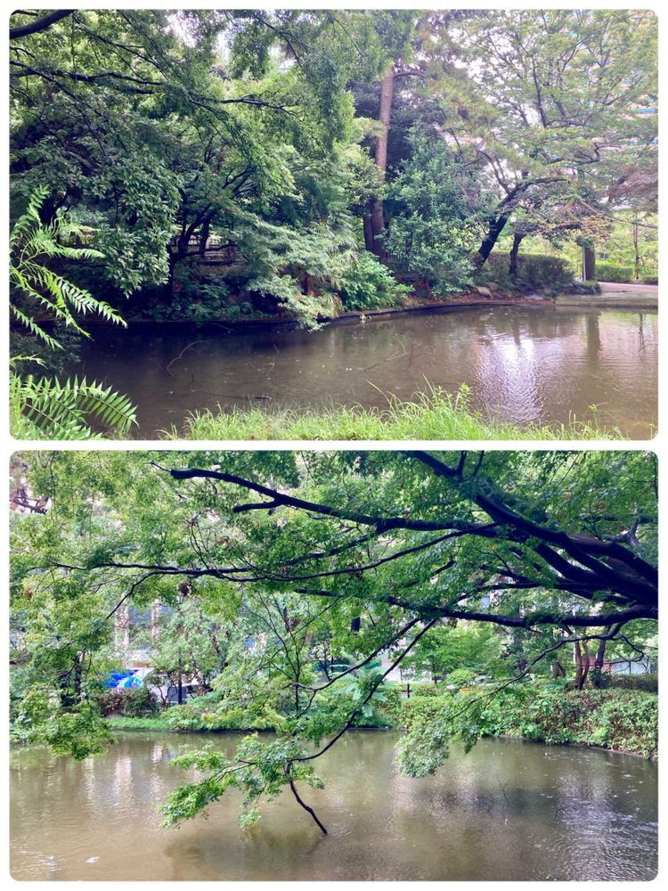 通勤時間に結構雨が降っていたので、近道として"清水谷公園"を横切った。