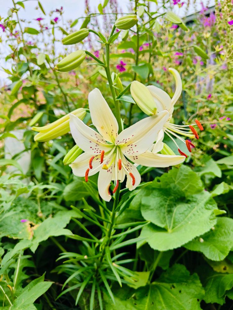 本来は晩夏の花のはずのシャンデリアリリーも開花をはじめました
