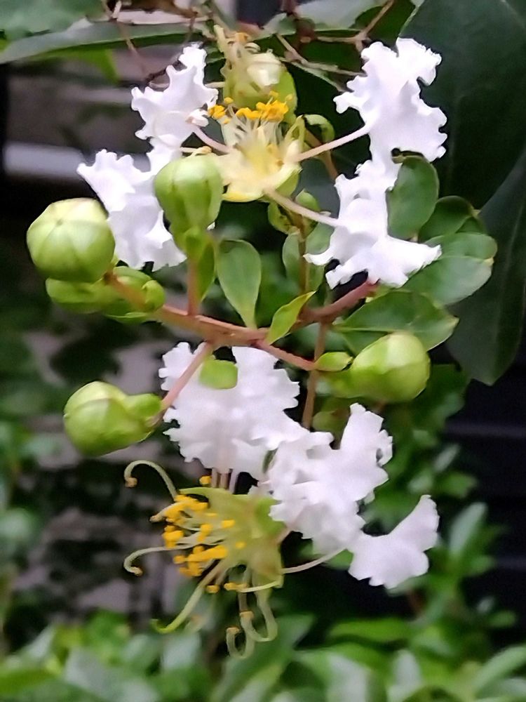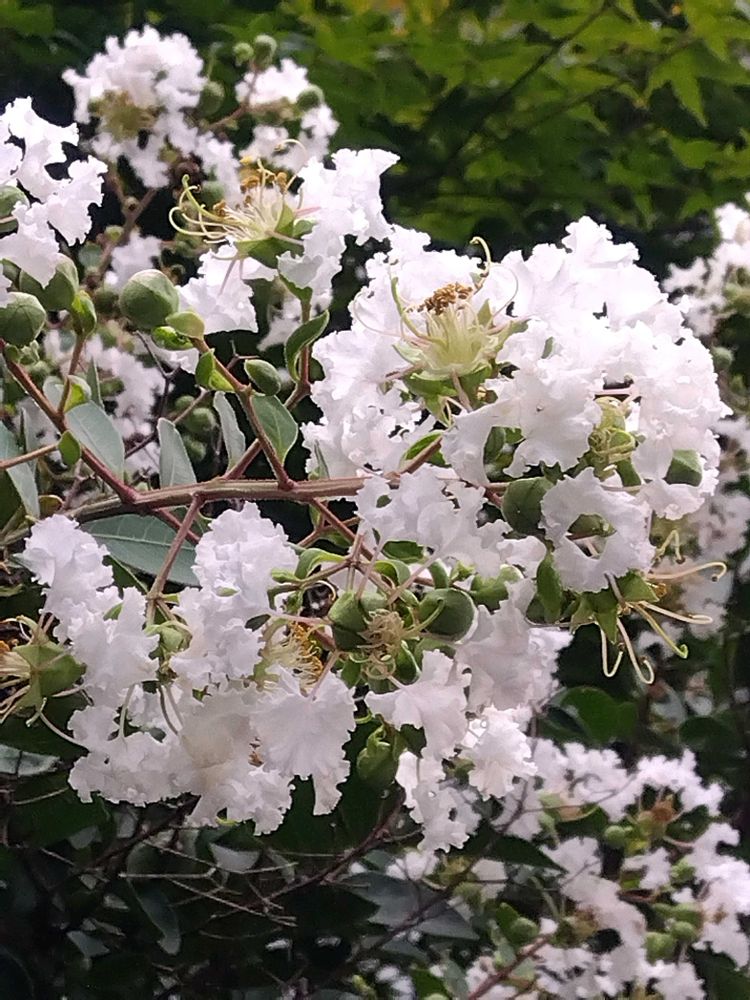 白いサルスベリやっと下の方にも咲き始めました