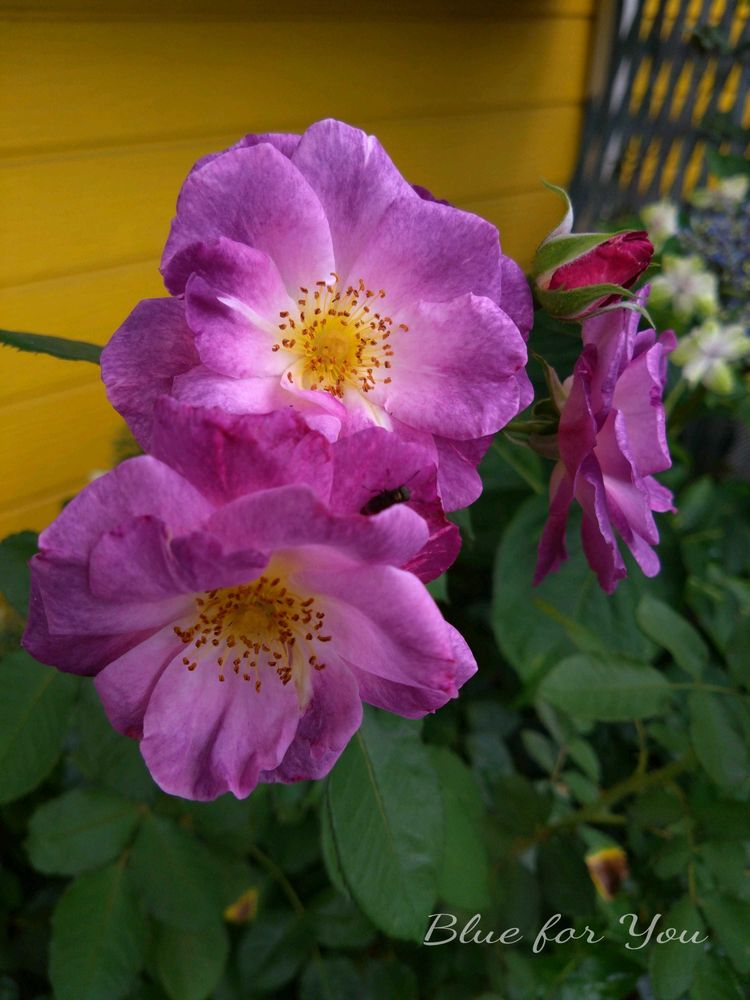 ブルーフォーユー🌹は夏はすぐに退色しちゃうけれど春はゆっくり咲いていい色合いよ〜❤ 横広がりになりたがるけどね😅💦