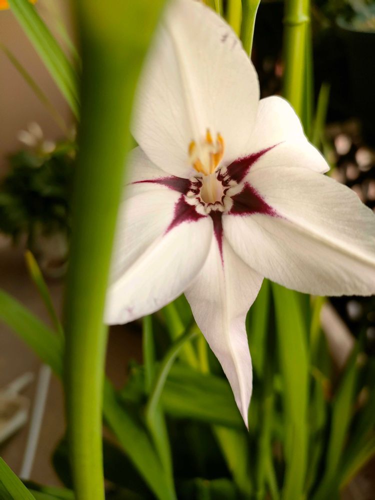 4/16グラジオラスと同じ日に球根を植えて、アシダンセラは本日開花🎶