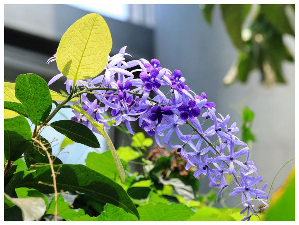 鮮やかな紫色の藤のようなムラサキツクバネカズラ💜が美しくて、なかなか魅力的で癒されますね(*ฅ́˘ฅ̀*)💕