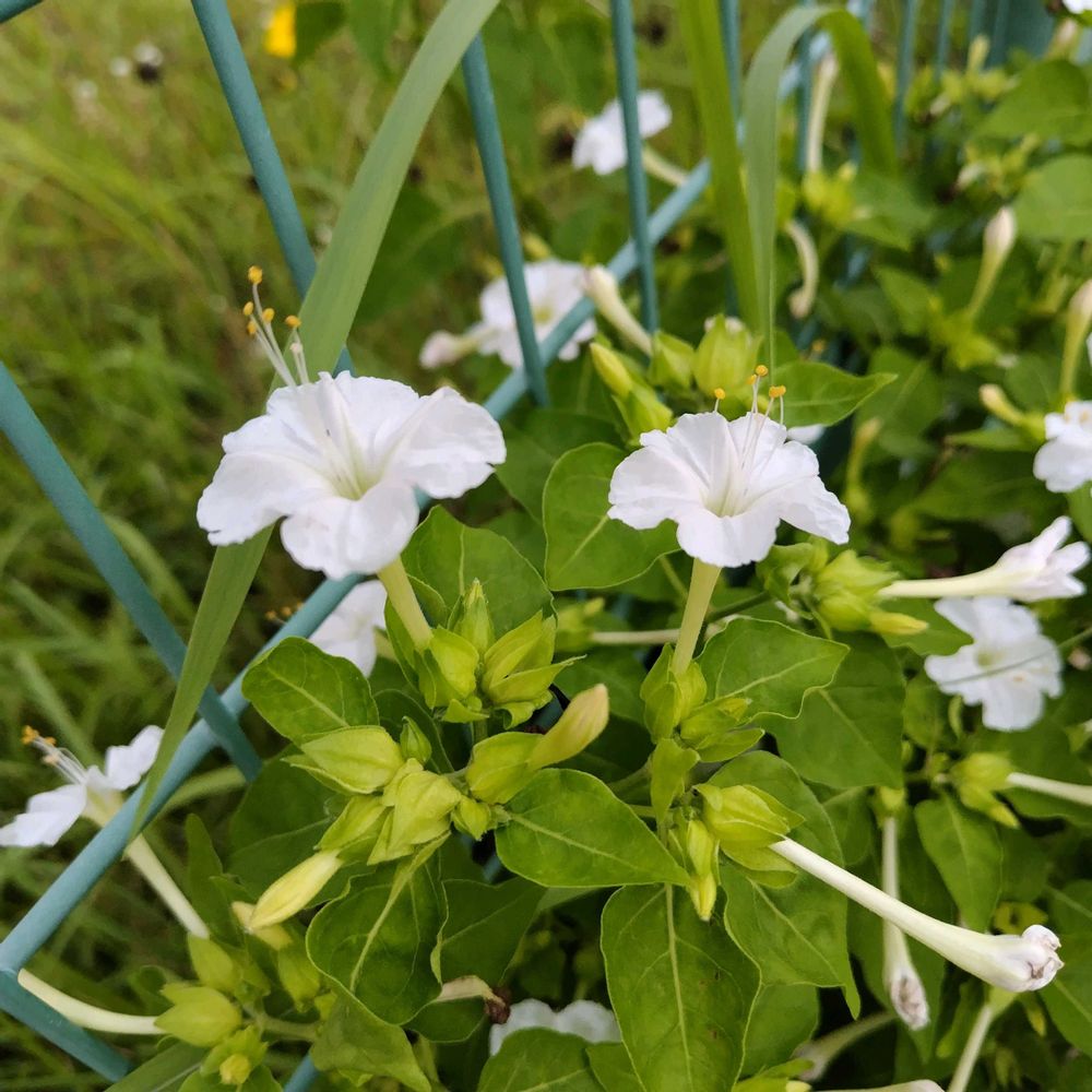 オシロイバナの白素敵すぎまーす!٩(ˊᗜˋ*)و!٩(ˊᗜˋ*)و!٩(ˊᗜˋ*)وオシロイバナってこんなに素敵だったかなぁ?可愛いですねー❤️𓂃 𓈒✨️