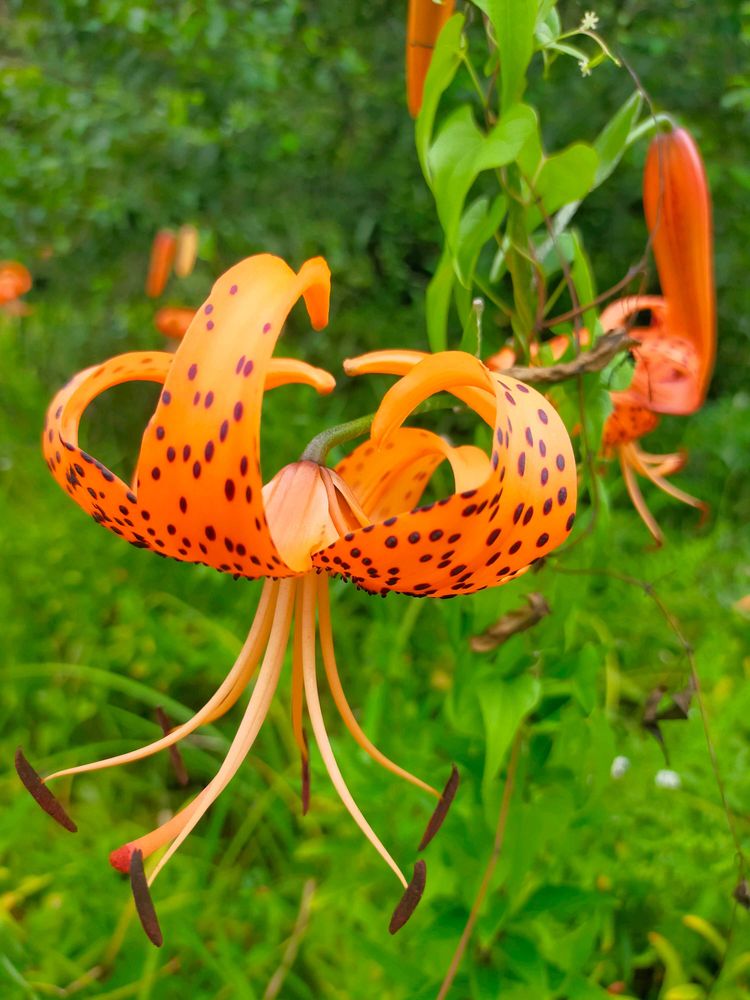 オニユリ オレンジに黒地の斑点が迫力、シベも心なしか攻撃的な色合い 蕾も鮮やかなオレンジ(2枚目)