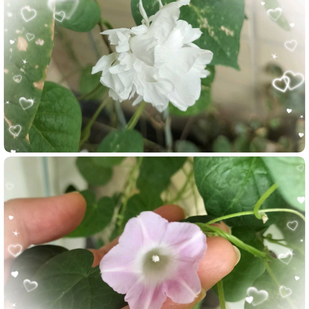 2枚目~は今朝豪雨の中ベランダで咲いていた八重咲き朝顔スプリットペタル🩷🤍白い方はフリフリ〜🎶😊