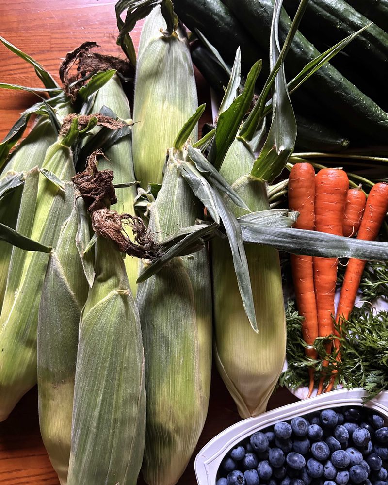 🌽は、焼きモロコシにして食べたら甘くて美味しかったです。