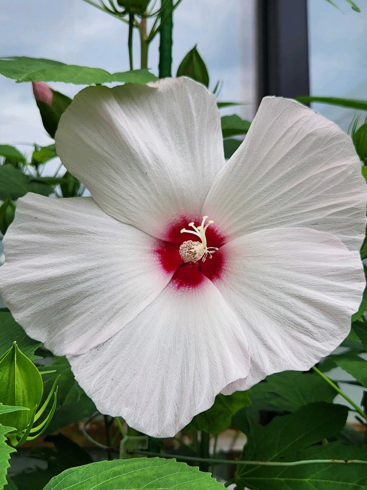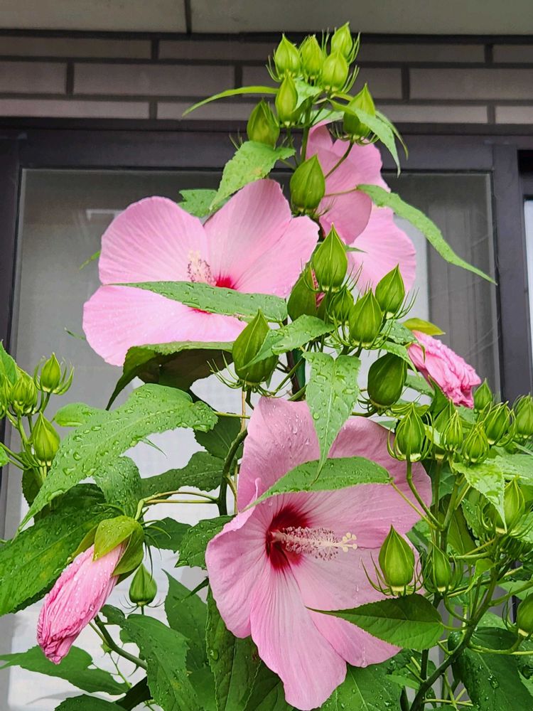 ピンクの蕾から白いタイタンビカス咲いたね🤍