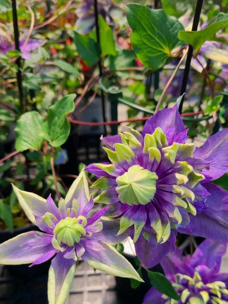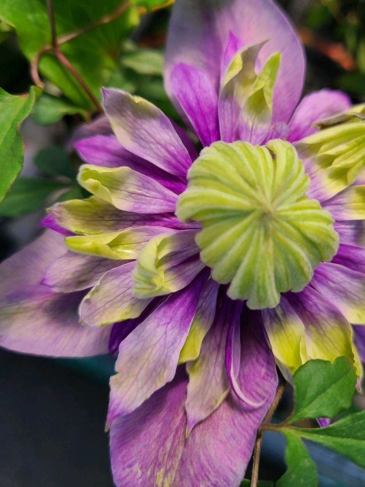珍しいクレマチスと出会いました😆外側が淡い紫花芯はグリーンを帯びた色の万重咲き花色の変化が面白いです😮