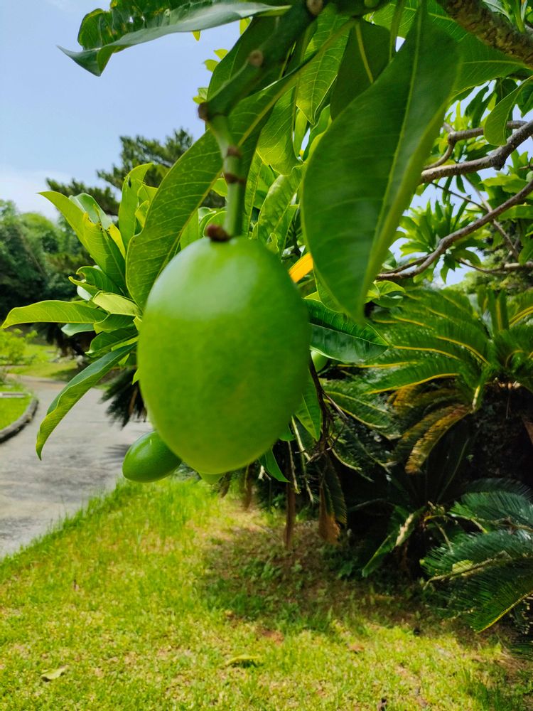 ずいぶん前に、美ら海水族館に向かってた時に、道端にこの実がゴロゴロ落ちているのを目にして、美味しそう〜なんて思っていたところ、ホテルの方に聞いたら毒があるから食べちゃダメだよ🙅って🤣💦