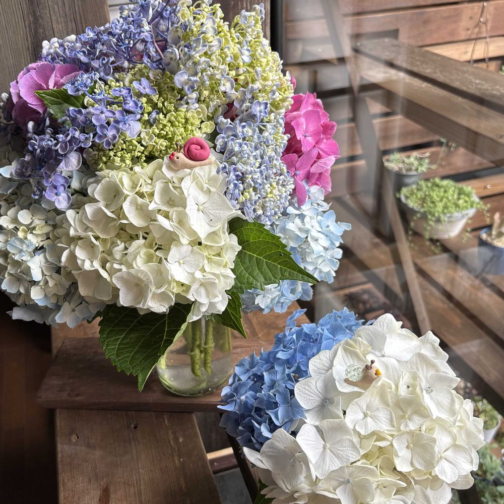 紫陽花がキレイなうちにマイマイタン登場🐌✨できたよ🥰