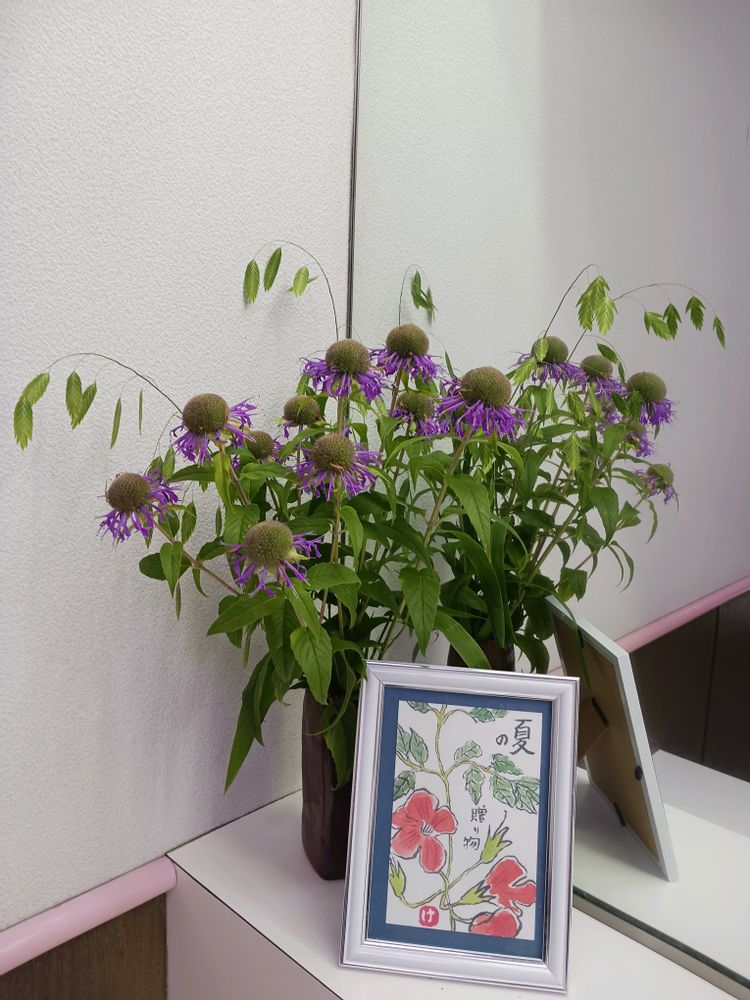 昨日はまた暑かったですね。こちらは昨日夕方少し夕立がありました。①昨日、隣市の外回り先のお宅のオニユリです。帰りに許可をもらって撮りました。②は夕方足りない物を買いにイオンに立ち寄りまた絵手紙とお花の写真を撮りました。昨日の絵手紙はシンプルで二度見しました。