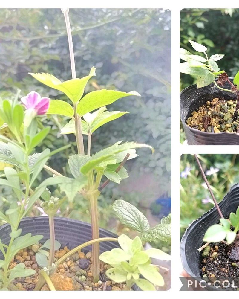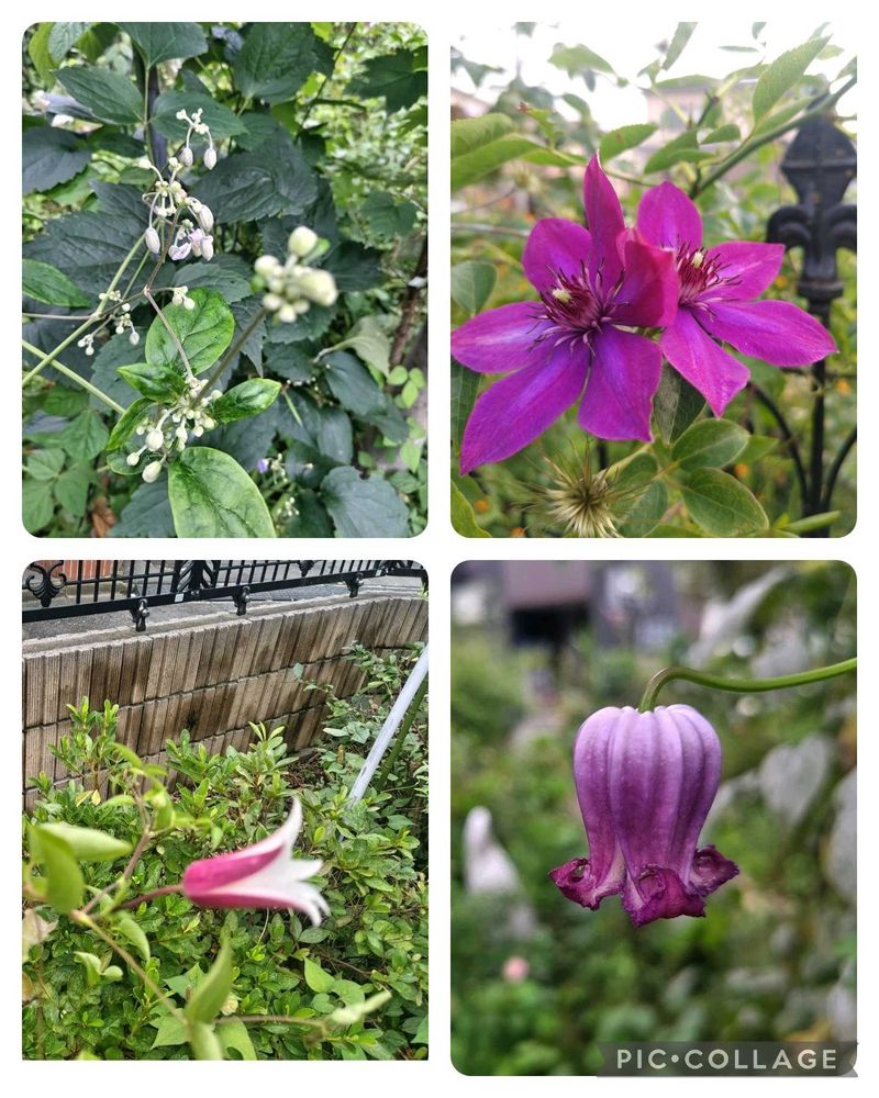左上です。二本分挿し芽あります。すごく大きく変わってるクレマチスです。右下は淡紅藤と言うクレマチス。