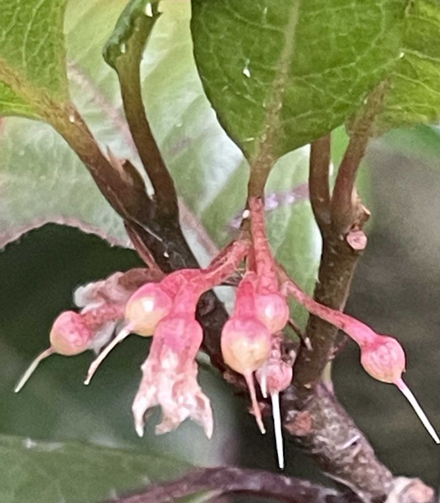 井戸の周りにあるヤブコウジ(十両)の花が咲きました。良く見ないと、わからない位小さな花です。