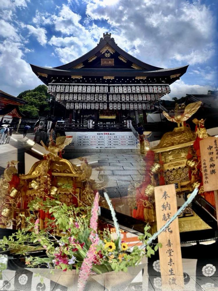 🏮①祇園祭〜八坂神社さんの舞殿〜今年の奉納献花(⑅︎•ॢ◡︎•ॢ).。*♥︎