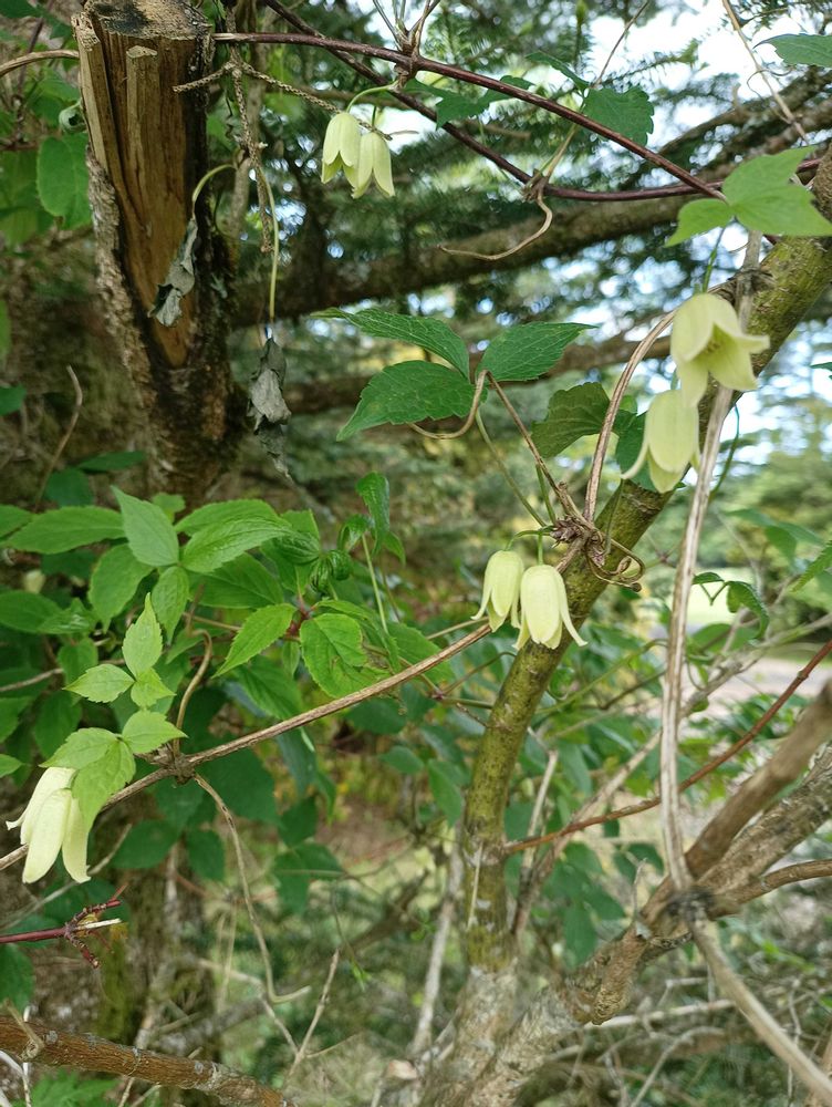 インテグリフォリアやロウグチの紫の壺型クレマチスも好きたけど、、、やはり富士山🗻の自然の中で咲いてる原種かな?のトリガタハンショウヅル〜綺麗🤍✨素朴な美しさがあるなぁと〜🤍🤍🤍✨✨✨見て見たいクレマチスです〜🤍✨