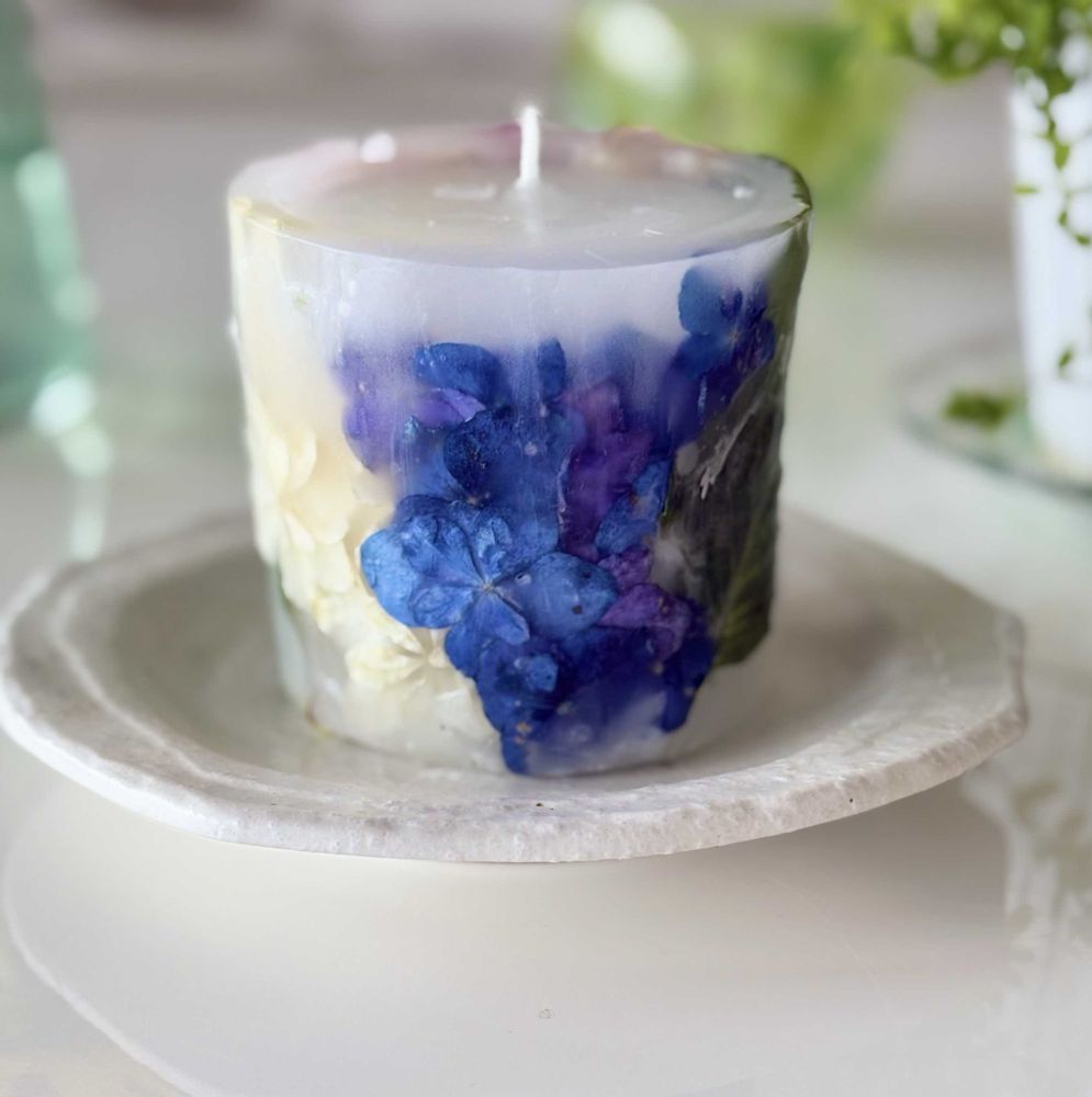 マリンブルーとウエディングドレスでキャンドル作り