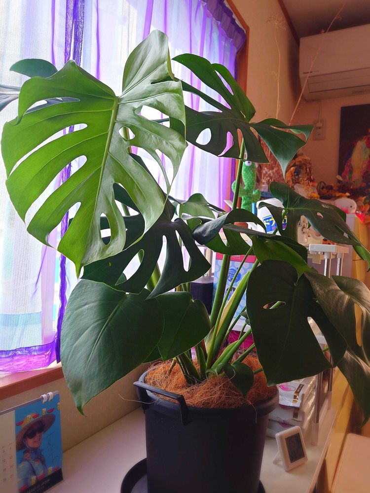わが家の二代目モンステラちゃん😄🌿今年のお誕生日の贈り物🎁✨️新しい葉が次々と育っていて幸せです🩷大きく立派に育ってね🎵