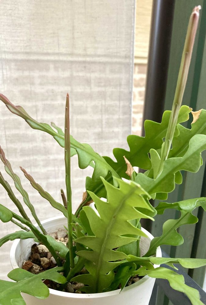 観察してたら このつのの左右に波波葉っぱがヒレみたいに広がってきて あの ワカメの様な形状になるみたい。😘