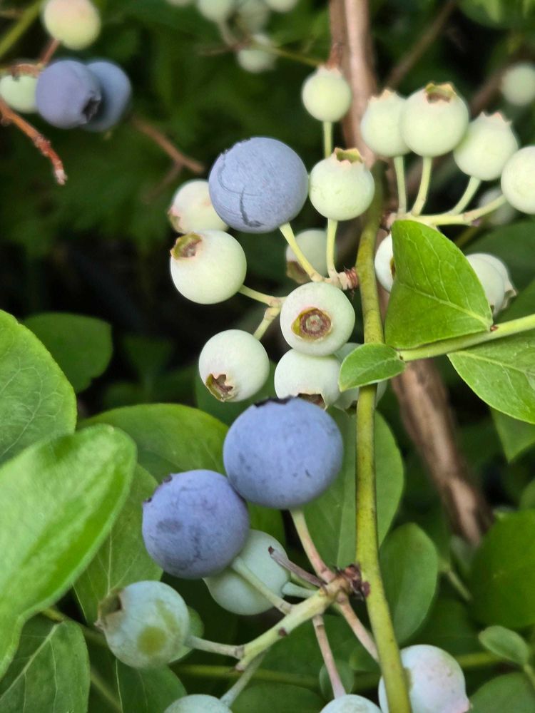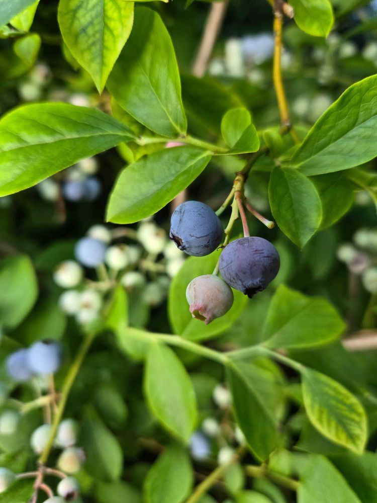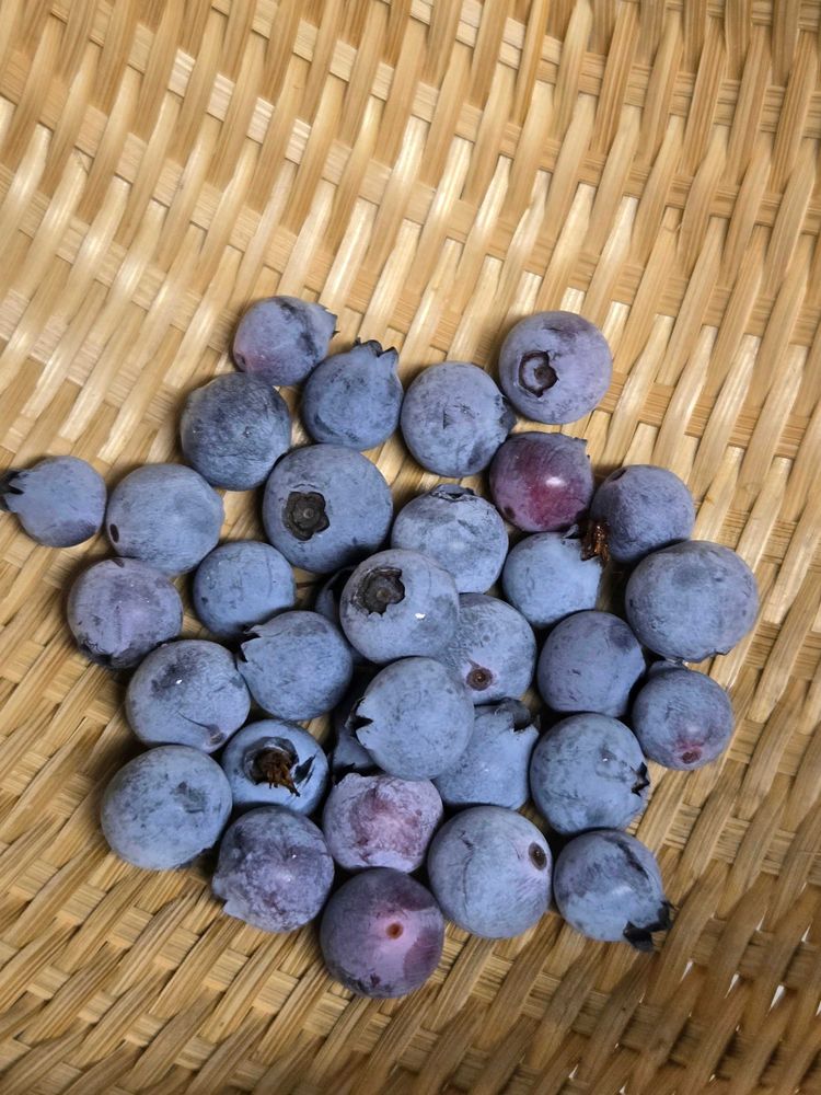 7月に入りブルーベリーの実が色づき、少しずつ収穫(●’∇’)♪