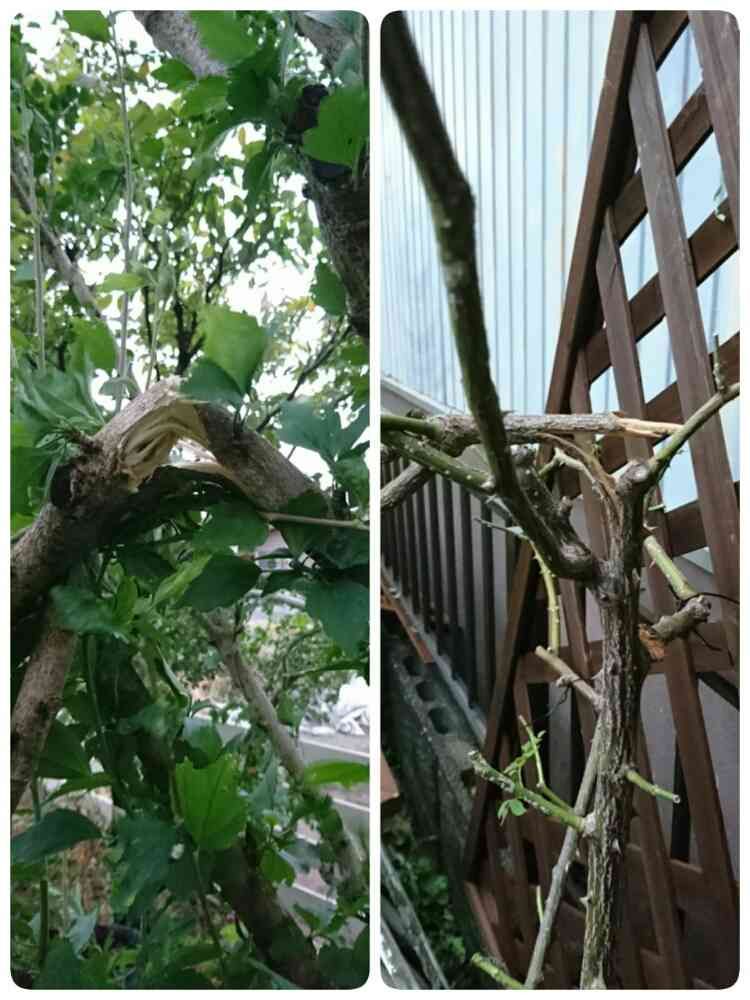 いつもの台風よりも風がほんとに強くてピエールさんと芙蓉の木の枝が折れてしまいました😢