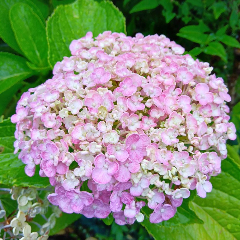 ⑤まだまだ咲き続けるお隣の畑のおたふくアジサイ🩷