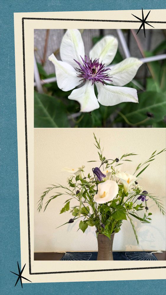 メインのお花も濃い色のクレマチスも💜麦のような動きのある草も素敵🤍🌿💜😊💕