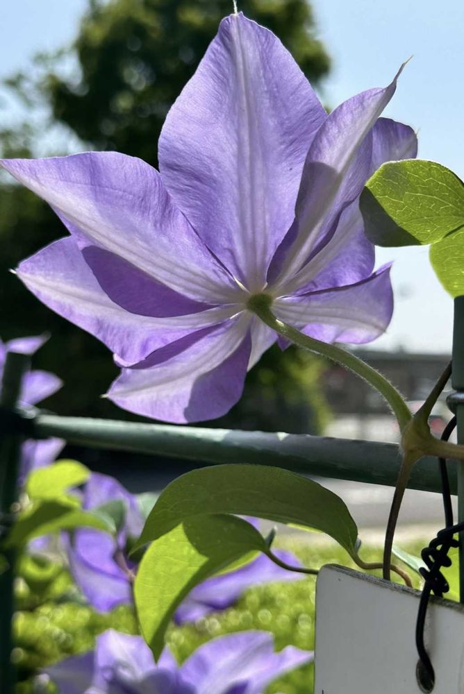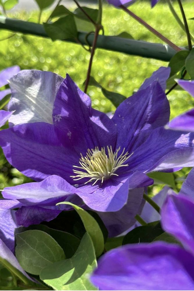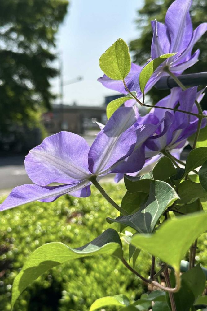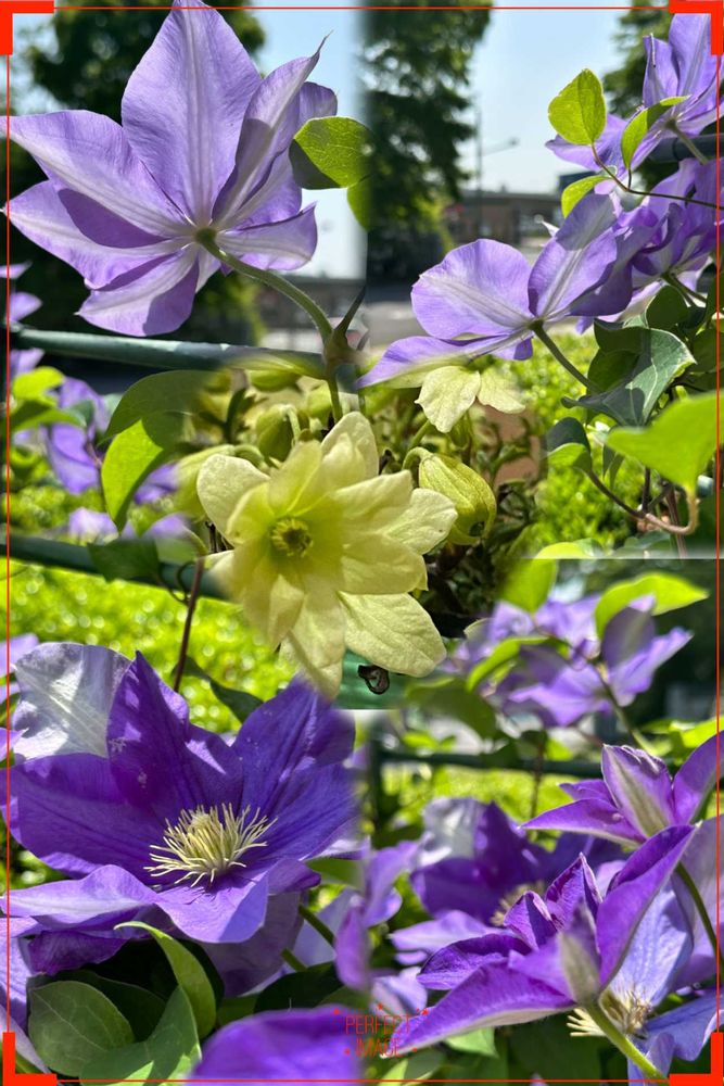 5月に出会った美しい紫色のクレマチスと大分前にお連れしたクレマチスペトリエイです。
