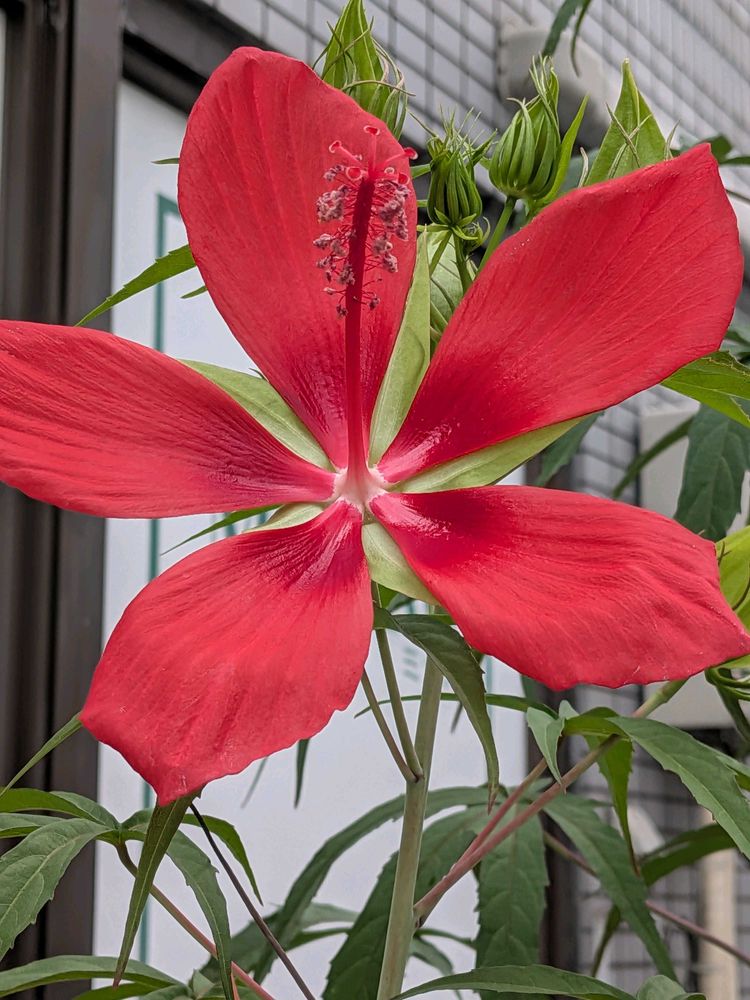 去年、タイタンビスカスを、地植えして、大きくなりすぎたから、鉢上げして、今年はそこそこ咲いています。