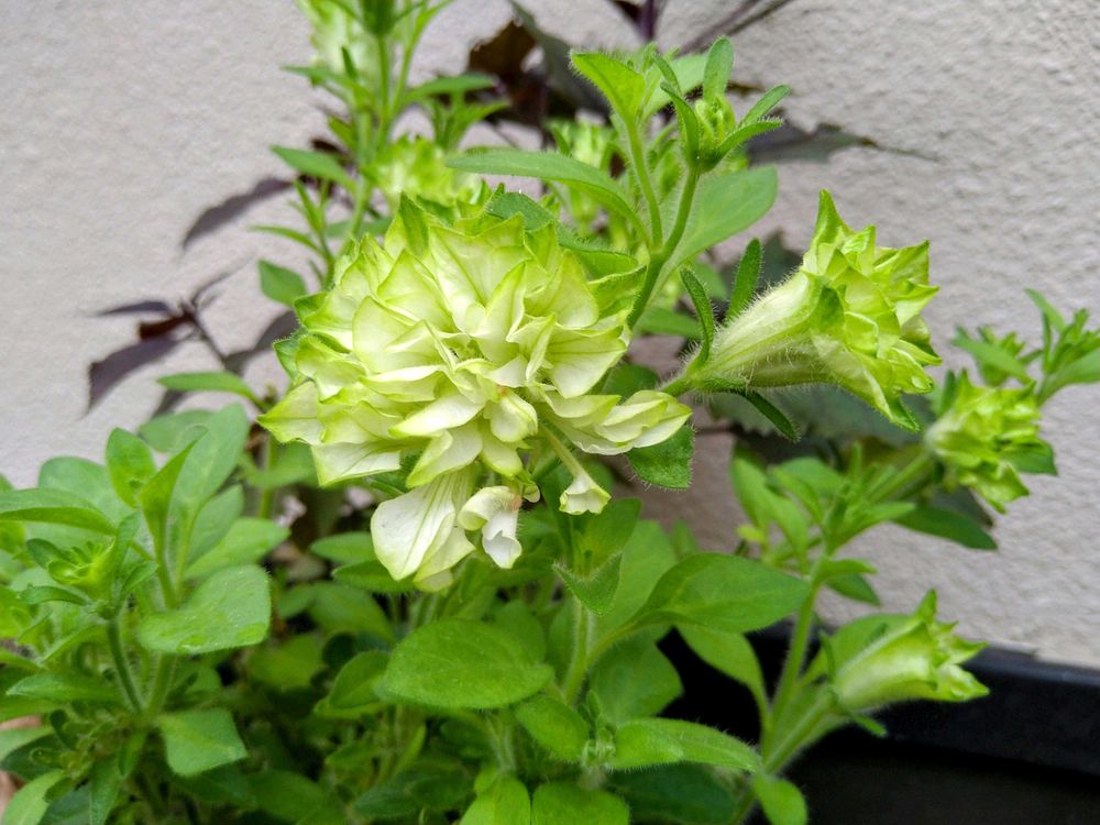 八重咲きペチュニア私は挿し穂だとなかなか綺麗に咲かせられないけど元気そうね🤍💚👍