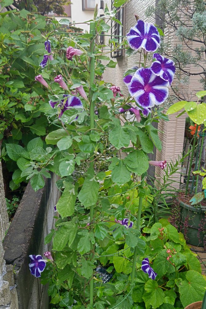 あっぱれな咲きっぷり、気分は小学1年生🎒。夏休みの宿題のアサガオの成長記録。