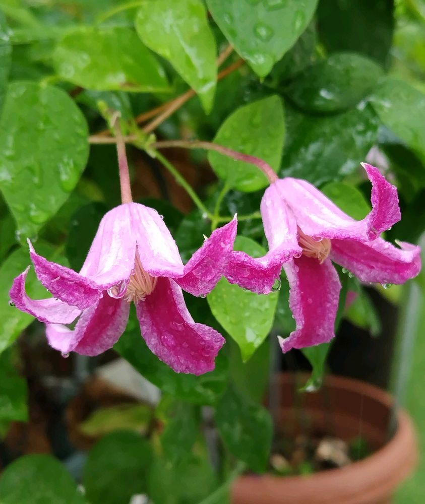 ①今年の春にお迎えした名無しのクレマチスが、今朝また咲いていました🌸🤗