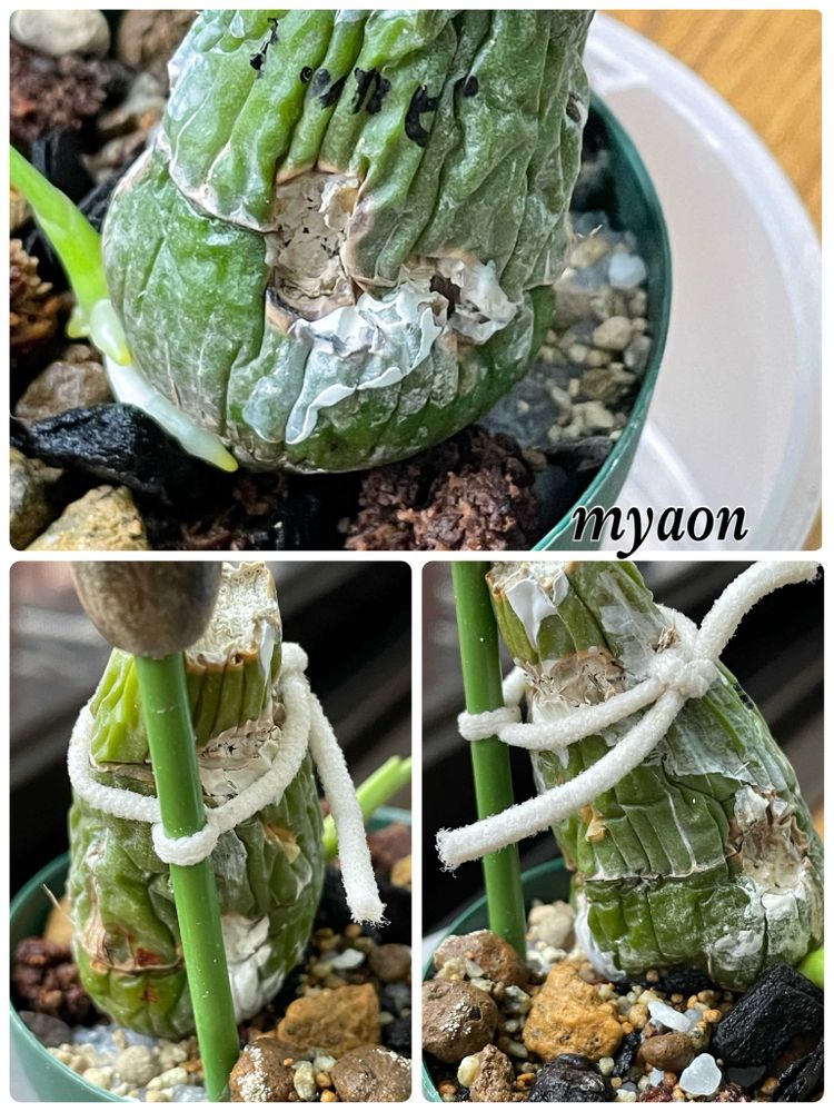 3枚目:クロウェシア レベッカノーザン“ミッカビ”5/25投稿した黒い斑点をほじほじしてダコニールを塗った株。小さな芽が出て、根っこも伸びてきたので植え付けました❣️👏🏻·͜·👏🏻·͜·👏🏻·͜·👏🏻·͜·👏🏻·͜·👏🏻·͜·タケノコ蘭は逞しいね💕︎