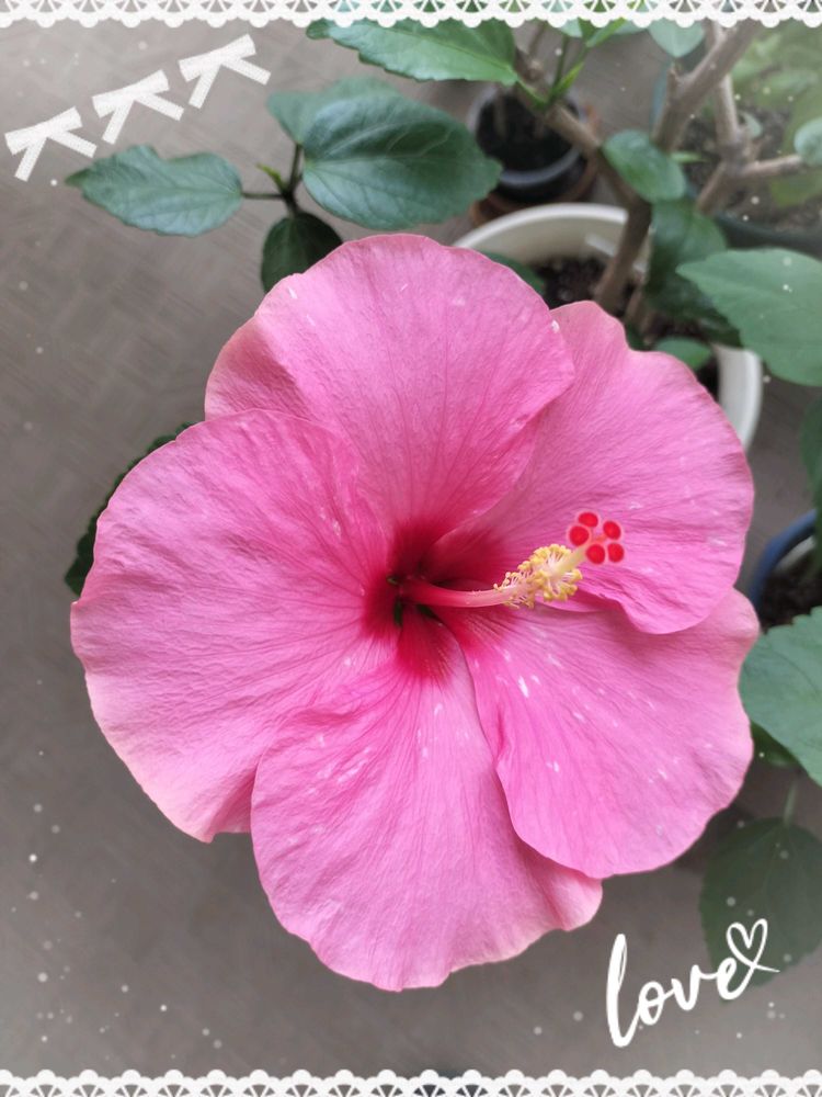 かわゆいリメ鉢~ありがとう🙏😘 ハイビスカス🌺冬取り込む時に剪定した枝挿し木してみようかな~😊🩷✨ ハイビスカス🌺がこんなに安心して育てられる植物だったなんて知らなかったよ💗