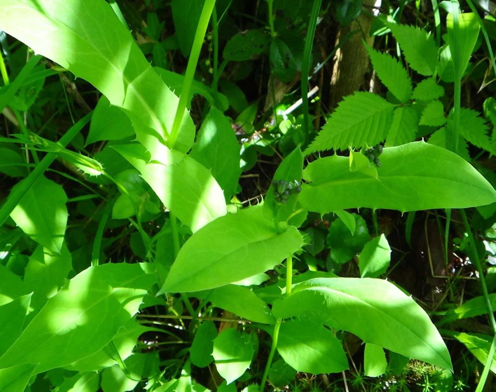そうしたら「他のニガナとの違いは、葉の付け根に柄がなく、茎の周りを取り囲むように付く、ということが最近わかった。」