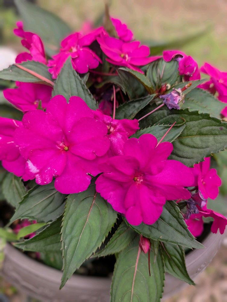 インパチェンスと種間交雑して作出された品種。炎天下の中でもどんどん大きくなる草姿で非常にインパクトがあり育てがいのある花です。